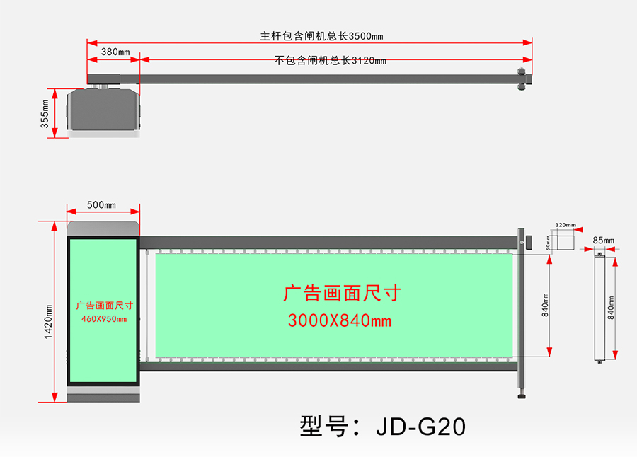 1、特殊設計的連桿傳動機構,始終使閘桿 90°運行。