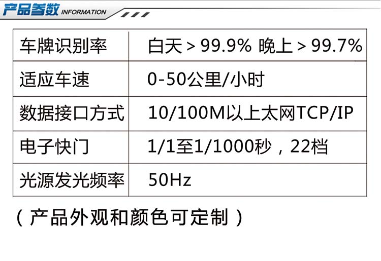 5、產品高度集成:產品集成了車牌識別高清相機、鏡頭、防護罩、立柱、補光燈、萬向節、電源等設備,屬于高度集成的一體化硬件車牌識別設備。