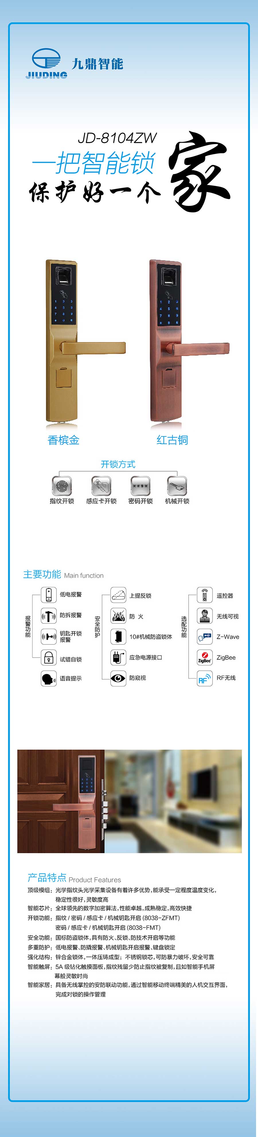 以工藝精致、前衛復古、極致安全的設計理念,全力打造中高端人群獨享的奢華安全門鎖。